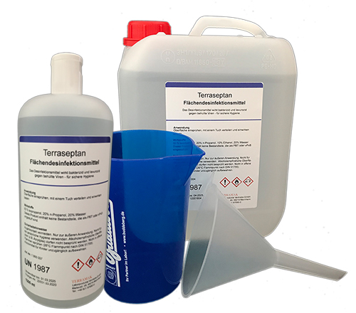 Gratis Messbecher und Trichter pro Bestellung von mind. 2 Händedesinfektions Kanistern!